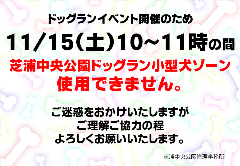 ドッグランイベント開催のため11/15(土)10~11時の間、