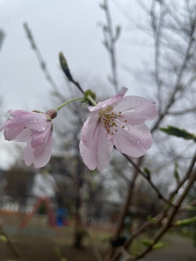朝の公園を巡回していると、早速一部の桜が開花している様子を発見🌸