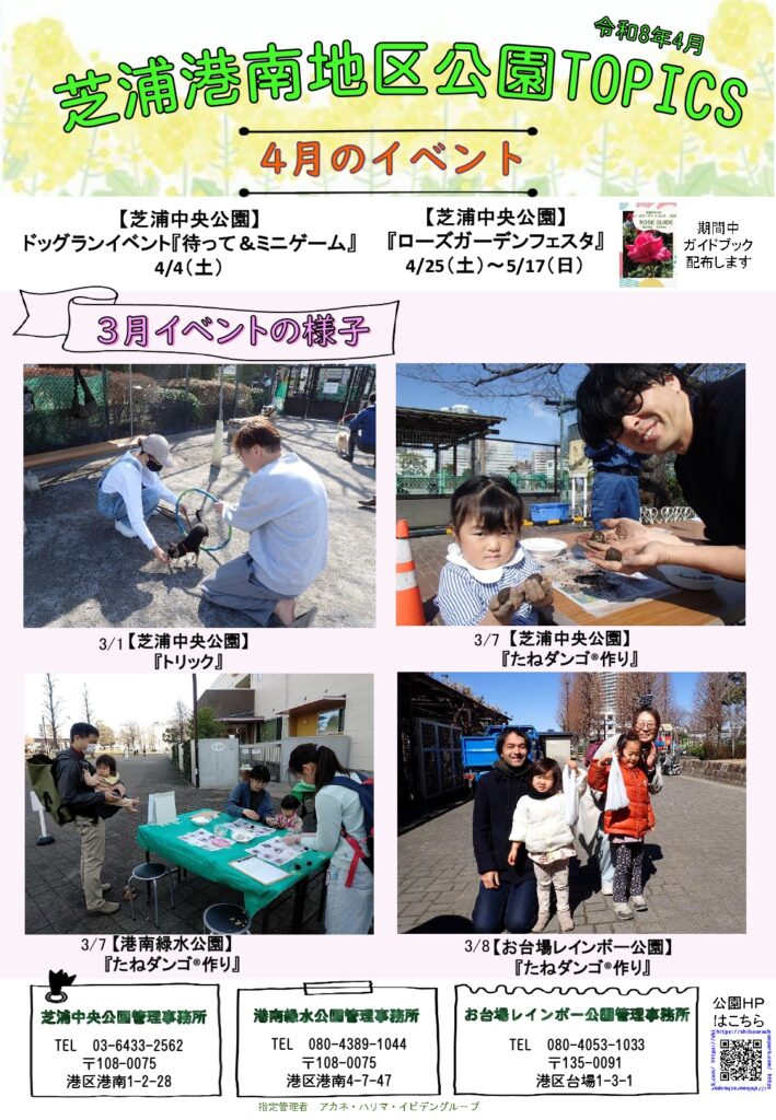 4/4(土) ドッグランイベント『待って&ミニゲーム』開催のお知らせ<芝浦中央公園>