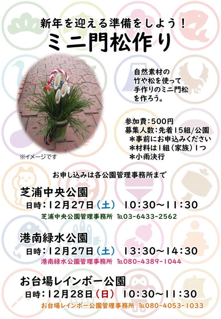 12/27(土)、28(日)『ミニ門松作り』開催のお知らせ<芝浦中央・港南緑水・お台場レインボー公園>