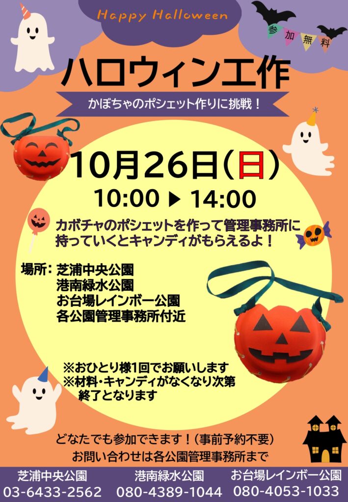 10/26(日) 『ハロウィン工作』開催のお知らせ<芝浦中央・港南緑水・お台場レインボー公園>