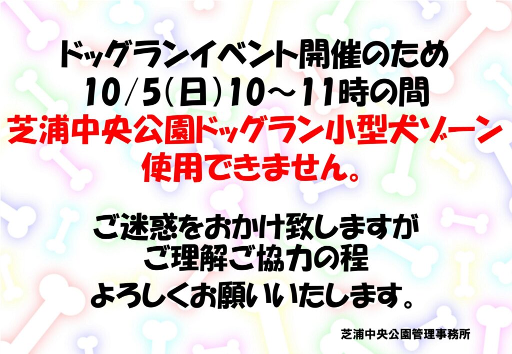ドッグランイベント開催のため10/5(日)10~11時の間、