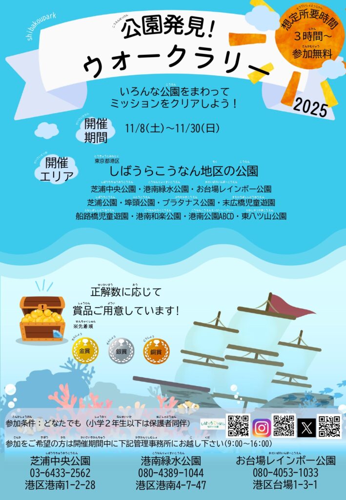 11/8(土)~11/30(日)『公園発見!ウォークラリー』開催のお知らせ<芝浦中央・港南緑水・お台場レインボー公園>