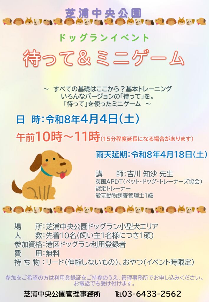 持 物:リード(伸縮しないもの)、おやつ(イベント時限定)